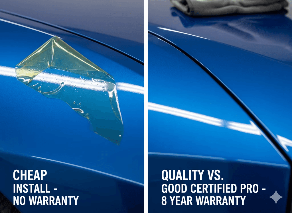 You've called around. You know cheap installs are likely to fail within 12 months (peeling, bubbling, poor fitment). You'd rather pay once for certified installers, premium film, and a 8-year warranty than fix a botched job twice.